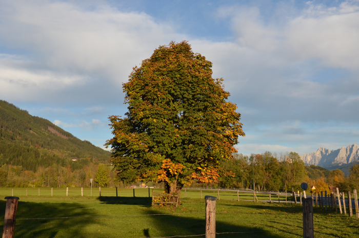 Schön wie unsere Kastanie im Gang der Jahreszeiten ihr Farbenkleid wechselt.
